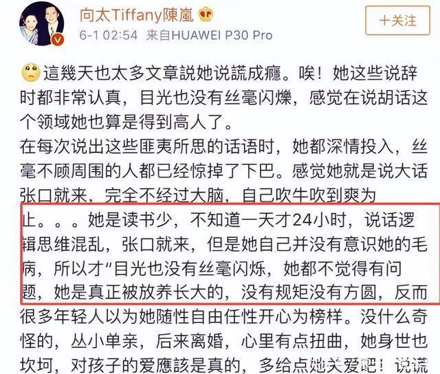 张柏芝一个人扛起两个孩子的生活起居,还要承受外界质疑,对于一个单亲妈妈来说不是一件容易的事。 3 张柏芝不是完人,她也有被诟病的地方。 拍戏迟到、耍大牌、违约解约,她曾被向太公开批评“说话没有逻辑”,还点赞了讽刺她的评论。